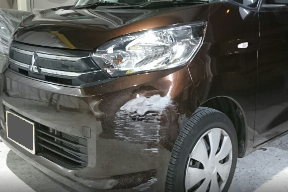 ヘコみはヘコみ部分を引っ張り出す板金作業を行って、もとの状態に近づくまで修正します。