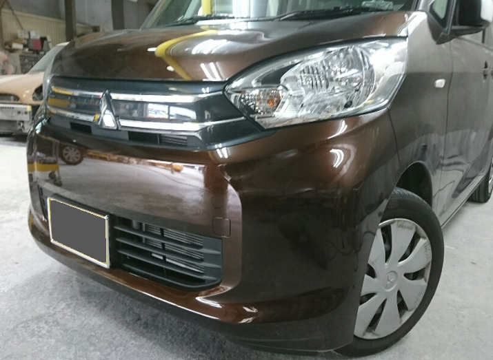 三菱 eKワゴンのバンパー修理を行いました。