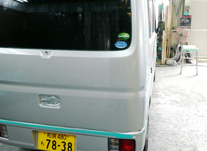 エブリィのゲート板金塗装を行いました。